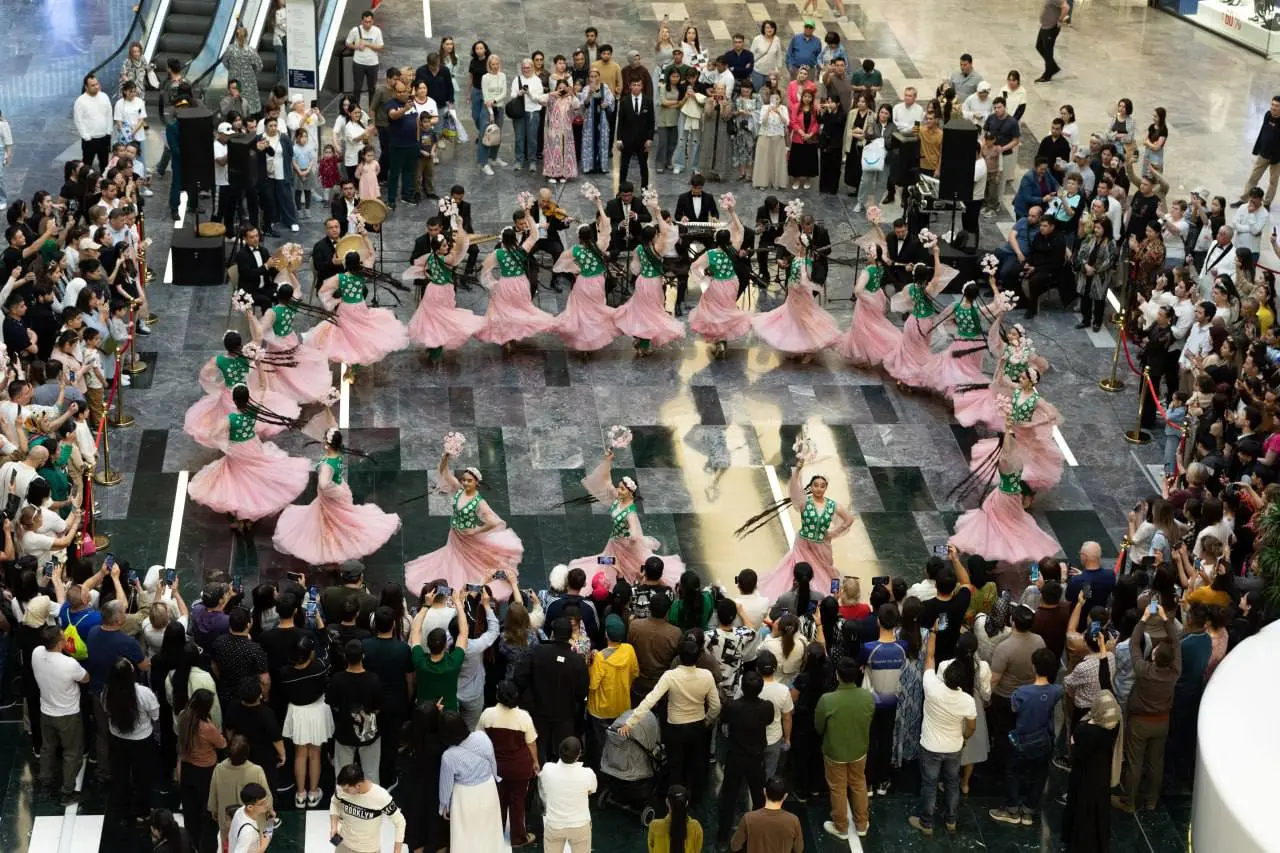 Tashkent City Mall ko‘ngilochar savdo markazida ajdodlarimizdan meros qadriyatlar, bahoriy shodiyonalar, yangilanish va ezgulik ramzi bo‘lgan Navro‘z ayyomi munosabati bilan Mukarrama Turg‘unboyeva nomidagi “Bahor” davlat raqs ansambli